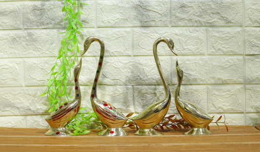 Brass Showpiece Duck Statue Plain and Painted Pair