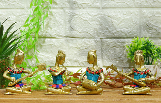 Joyful Brass Musical Set with Stone Work | 4 Piece Musician Idol