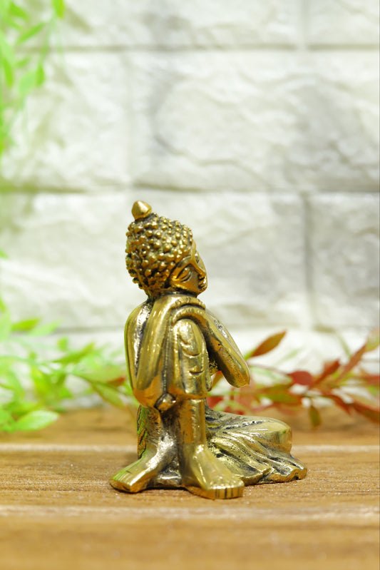 Brass Gautam Buddha Idol in Gold Color with Tilted Head on Knee